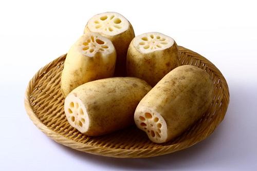 レンコンはビタミンCの含有量が豊富。100gあたり48mg。ビタミンCの代名詞ともいえるレモン果汁が、100gあたり50mgであることを鑑みると非常に多いことがわかる。コラーゲンの生成に欠かすことのできない栄養素でもある。また、体内では生成できないので、日常的な摂取が求められることでも知られている。