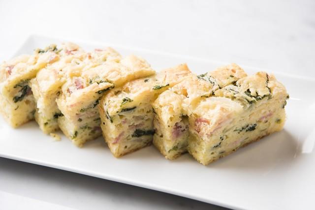 見映えを考慮して縁を外し、手頃なサイズで切り分ける。最後は皿に並べて完成だ。
