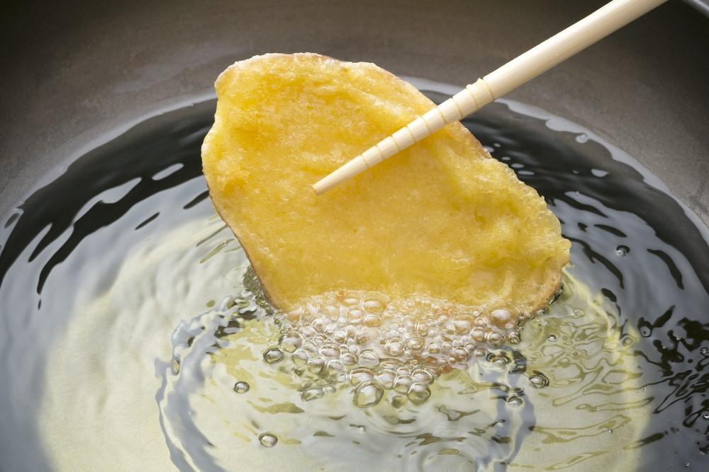 揚げあがりを判断する基準は、実は音だけではない。具材を持った時に箸から伝わる振動も見逃せない重要なサインだ。