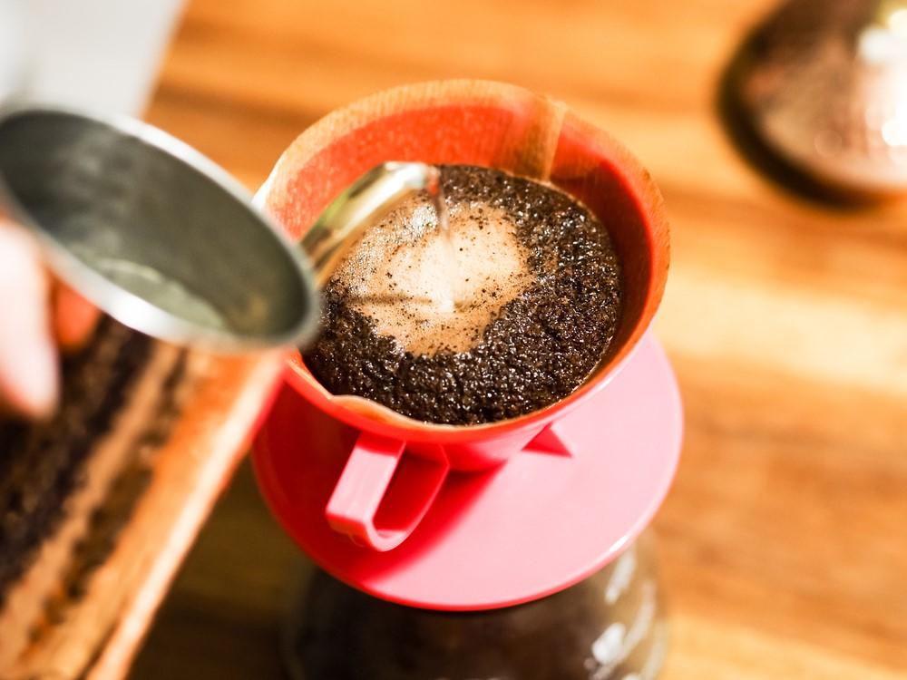 美味しいコーヒーを淹れるにはまず、コーヒーを少量の湯で蒸らす。その後、少しずつ湯を足してゆくのだが、最初の蒸らしがうまくいくと豆はふっくらと膨らみ、表面にわく泡はツヤツヤとした褐色になる。