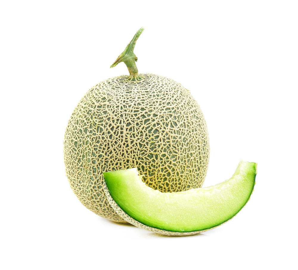 高級メロンとして温室内で栽培されることが多いメロン。果肉はきれいな黄緑色で柔らかく、みずみずしく香り高く爽やかな甘味がある。栽培過程で実を1株に付き1つに剪定することで、美味しさを凝縮。メロンの頭にT字型のツルが残ったまま販売される。ハウス栽培が主なので、特に旬はなく一年中出回る。