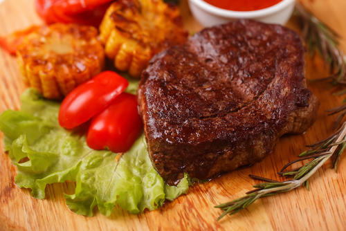 また、牛肉は50%以上が水分であることは前述したが、この水分(肉汁)は、加熱によって、蒸発したり、筋繊維タンパク質のちぢみにより水分が絞り出される、という現象が起こる。この保水性は、加熱のしすぎ(温度・時間)だけではなく、下塩の仕方(量・時間)によっても損なわれ、牛肉をはじめとする肉は、パサついた固い仕上がりになるのである。そのため、水分の損失と筋繊維タンパク質のちぢみを最小限に抑えることで、やわらかくジューシーな食感となるのだ。