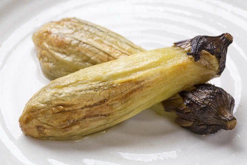 ちなみに焼きナスを作る場合は、基本の下処理を行なったあと、丸のまま網や魚焼きグリルで焼くのが正解。縦に1本、浅い切り込みを入れておくと皮の破裂を防ぐことができ、火の通りもより早くなるから、オススメ。丸焦げになるまで焼き、冷水に取り、粗熱が取れたら、下手から縦に皮を剥くと良い。