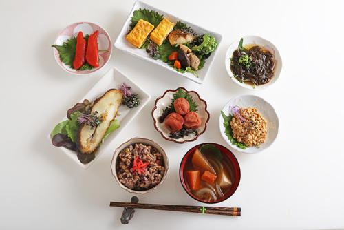 副菜の定番である「ひじきの煮物」には、一般的に大豆・油揚げ・ニンジン・ひじき・干ししいたけなどが使われることが多い。また、ごま油を加えたり、イモ類であるこんにゃくを使ったりすることも可能だ。常備菜としても便利なので、「まごわやさしい」が不足しているときにおすすめだ。