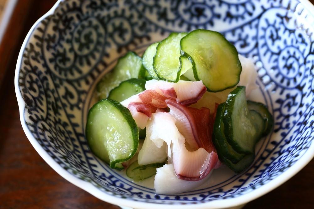 ◎きゅうりとタコの酢の物 [60kcal、5.1g](タコ33g、キュウリ67g)