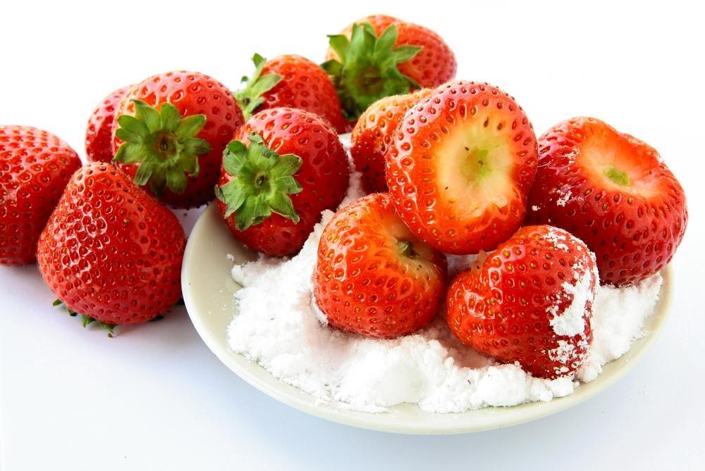 - いちご全体にまんべんなく砂糖をまぶす