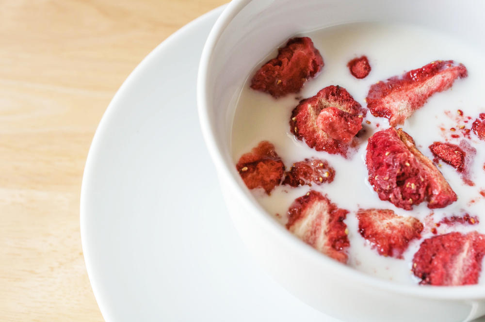 以上がドライいちごの作り方である。意外と簡単だろう。オーブンや電子レンジを使えばさらに手早く作ることも可能だ。水分を完全に飛ばせば、密閉容器に入れての常温保存もできる。そのままでも十分美味しいし、牛乳に入れたりパンや菓子の生地に混ぜたりしてもよい。冷たいデザートのトッピングやサラダに加えるのもおすすめだ。