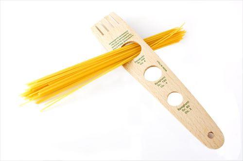 パスタメジャーとは、パスタ専用のスケールのことである。プレートに円形の穴が開いていたり、台に目盛りが付いていたりとタイプはさまざまだが、いずれも簡単に一人前(数人前)のパスタを計量することが可能だ。使い方はタイプによって異なるが、例えば、穴が開いているプレートタイプの場合は、その穴いっぱいにロングパスタを通せば一人前を量ることができる。