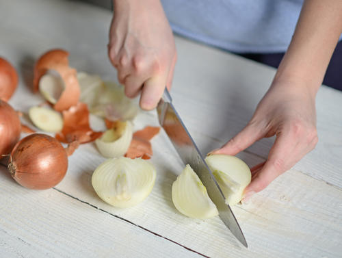 玉ねぎの細胞が壊れると刺激成分であるアリシンが生成されやすくなるため、よく切れる包丁を使って、なるべく細胞をつぶさないようにする。