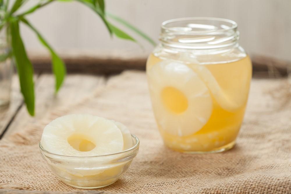 一方、パイナップルでもっともポピュラーなのは缶詰だ。砂糖漬けと同じく甘い汁に漬けてはいるが、カロリーも糖質量も砂糖漬けよりはかなり少ない。ただ、生のパイナップルと比べると、砂糖が加わる分、糖質量はほぼ2倍の約20gにもはね上がる。100gのうちの5分の1が糖質になる計算だ。輪切りのパイナップルを5等分した場合、その1つが糖質であると念頭におき、一度にたくさん食べるのを控えよう。