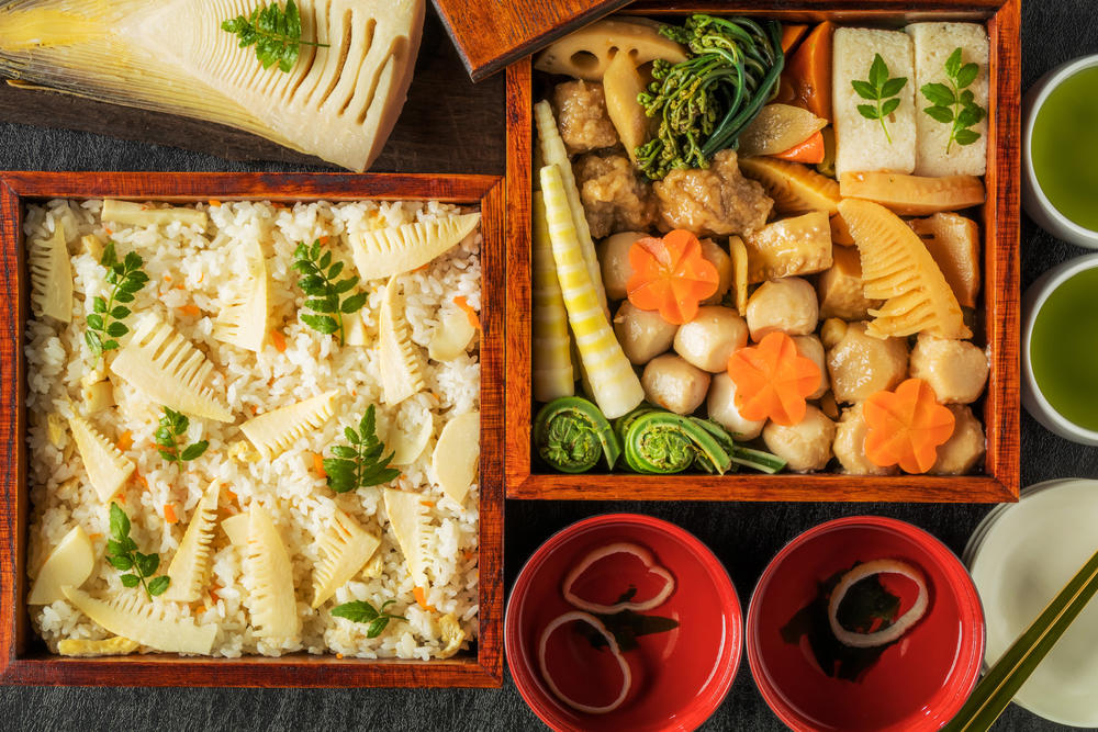 新わかめと合わせた若竹汁、木の芽和え、タケノコごはん、相性抜群なフキや大豆と一緒に煮るなど、美味しくいただく定番料理もいろいろ。また、あらかじめ煮て味をつけたタケノコの天ぷらは、格別にうまい。この時期一緒に出回るうどやタラの芽などの山菜と共に、春の精進揚げを自宅で楽しんでみてもいいだろう。