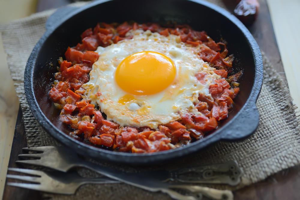 手軽でおすすめなのは、スパニッシュスタイルのトマトと卵の炒めもの。フライパンにオリーブオイルを入れてみじん切りのニンニクを入れて、そこにトマトを入れ炒めた後、卵を割り入れ半熟状態まで熱を加えるだけでOK。