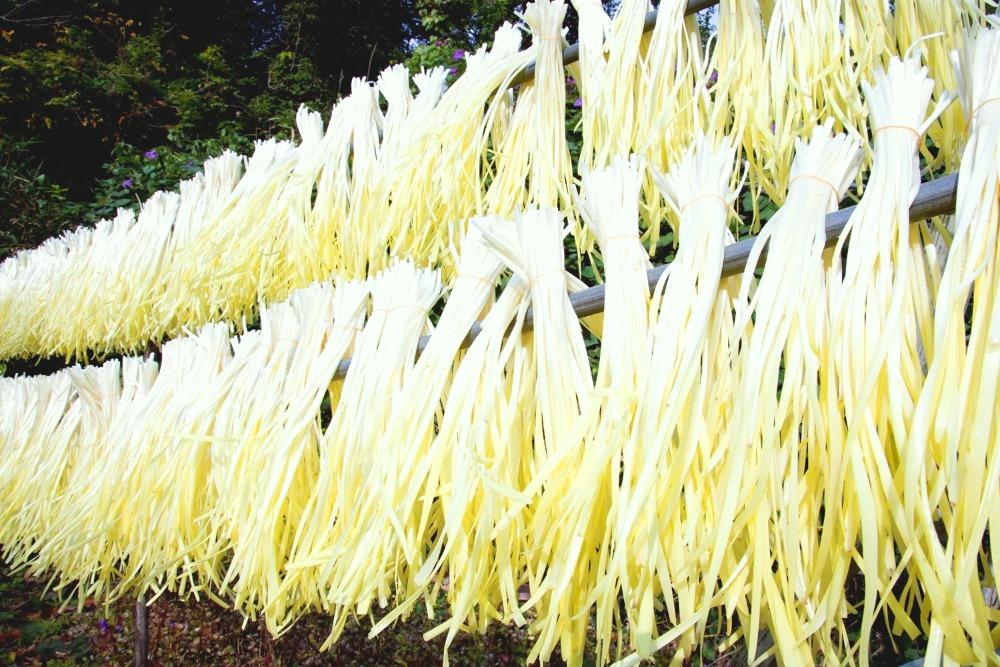 普通のニラが年に7〜8回収穫できるのに対し、黄ニラの収穫は年2回だけ。さらに1年株を休めて、もう1年2回収穫するのみという、極めてデリケートな野菜である。20~25日ほどで収穫できるが、収穫後に一度天日に干すことで、色も良くなり張りとツヤが出て、甘い独特の風味とシャキシャキとした食感が出るそうだ。