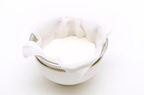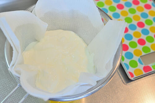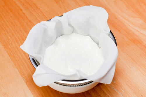 ヨーグルトを電子レンジで加熱する方法なら、すぐに水切りヨーグルトを作れる。やり方は、まず耐熱容器にヨーグルトを入れてから、600Wの電子レンジで6分程度加熱する。それから、キッチンペーパーを敷いたザルにヨーグルトを移して漉せば完成だ。