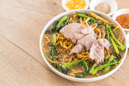一方かた焼きそばは、中華料理店のテーブルにしょう油とラー油と共に常備されているお酢をかけて食べる人が多い。