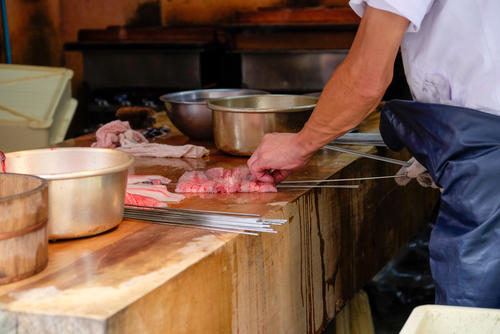 串を打ったらすぐ焼くという関西流に対し、関東ではいったん焼いたものを蒸し、タレを付けてからもう一度焼く。実はこの「蒸し」がさばき方に違いが表れた理由のひとつでもある。関西流の腹開きだと外周部分の身付きが薄く崩れやすいため、関東では背開きが選ばれたともいわれている。