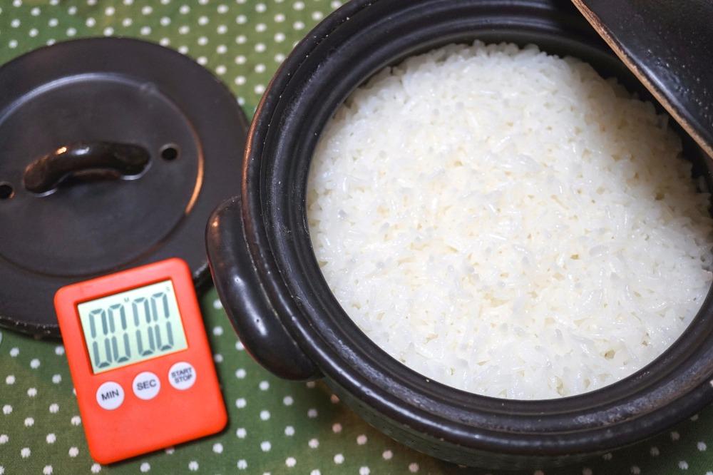 まず準備したいのは、土鍋とタイマー。土鍋は、短時間で美味しいごはんが炊ける強力なツール。火にかければじわじわと遠赤外線効果を放出し、米の芯まで火が通り、ふっくら、もっちりごはんに仕上げることができる。タイマーでしっかり計測し、強火、弱火、蒸らし時間を測ることも成功への近道だ。