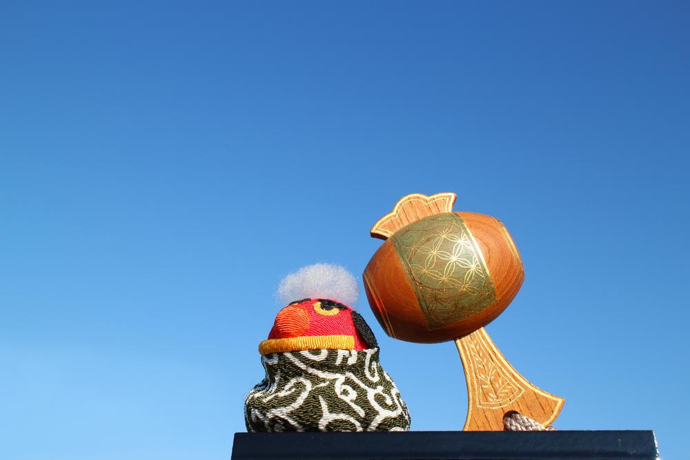 上に載ったみかんの由来は、「八尺瓊勾玉(やさかにのまがたま)」という勾玉(まがたま)。八尺が勾玉の大きさを指すのか、結ぶ紐を指すのかはわかっていないようだ。岩戸隠れの時に玉祖命が作り、八咫鏡とともに木に掛けられたとされる。橙(だいだい)色のみかんには、子孫が代々(だいだい)続くようにという意味も込められている。