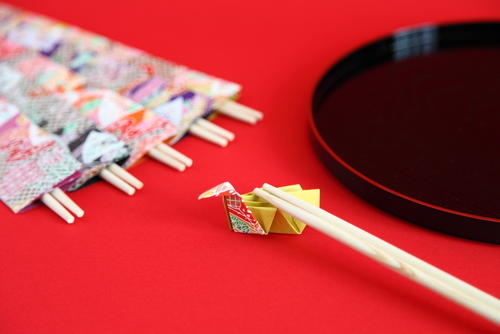 祝い箸の使い方には、ルールがある。といっても難しいものではなく、とてもシンプルなのでぜひ覚えておこう。まず、箸の中央付近を手で持って、箸の先から3㎝位までの部分を使用するということ。注意が必要なのは、箸の片側しか使ってはいけないということだ。