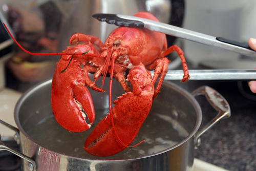 茹でるよりも時間がかかってしまうのだが、甘味が増すのでより美味しく味わえる。鍋に底から5㎝程度の塩水を沸かし、ロブスターを入れて再沸騰してから時間を計測する。最低でも18分以上は掛かる。