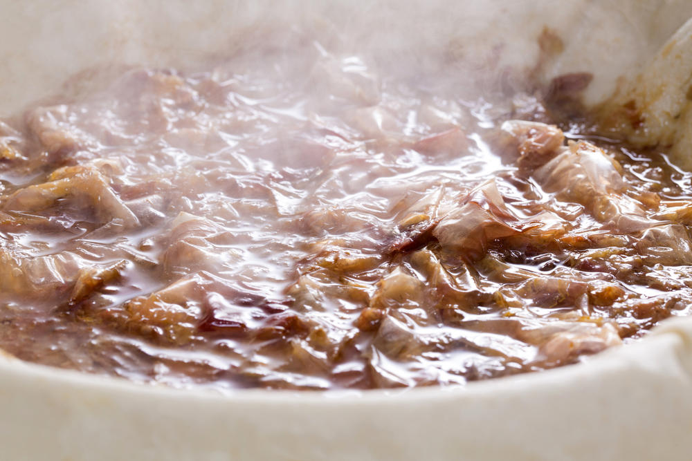 さて、ここまできたら、「一番出汁」のとり方は実にカンタン。沸騰直前の湯に削り節(水1,000mlに対して削り節30gほど)を加え、浮いてこないよう箸で押さえて沈め、入れ終わったら即座に火を止めるだけ。そのまましばらく10分ほどおいて、ボウルや瓶に漉して入れれば完成だ。漉す時は絞ると雑味が出るので注意したい。多めにつくって、小分けにして冷凍しておくと必要な時にすぐ使えて便利だ。