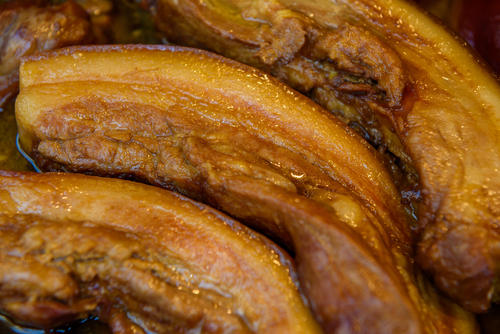 角煮は炊飯器で上手に作ることができるレシピの代表格。一定の温度でじっくり煮ることができるので、柔らかく、味の染みた角煮ができる。材料を入れて、スイッチを押すだけで作れるところも嬉しいポイント。適度な大きさに切った豚バラブロック(400~500g)はフライパンで表面をこんがりと焼いておく。炊飯器に焼いた豚肉、水400ml、長ねぎの青い部分、生姜ひとかけを入れて炊飯スイッチオン。炊き上がったら長ねぎを取り出し、皮をむいて3㎝の厚さに切った大根を加え、醤油、砂糖各大さじ4、酒100㏄、ひたひたになるくらいの水を加えてもう一度炊飯スイッチオン。炊き上がった後、一旦冷まして、再度保温するとより味が染みる。