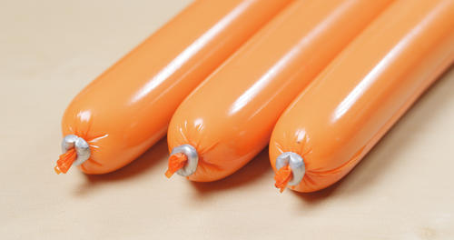 ところで、魚肉ソーセージといえばオレンジ色の包装フィルムがお馴染みだが、なぜオレンジ色なのかご存知だろうか?実は魚肉ソーセージは、包装フィルムに詰めて密封した状態で加熱・殺菌される。これにより、保存料などを使わなくても常温での長期保存が可能となっている。密封してから加熱することにより魚肉がふっくらするため、あのような「パツパツ」なのだ。