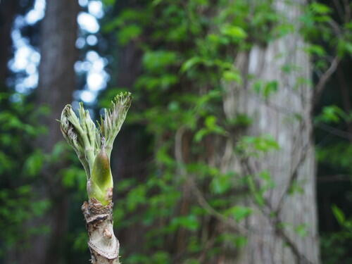 山に入って天然のタラの芽を収穫する場合は、タラノキの枝先に芽吹いている「頂芽(ちょうが)」と呼ばれる部分だけを摘むのが基本だ。枝などで先端を引き寄せてから、専用の手袋をした手で摘み取るようにする。なお、枝の側面に生えている「側芽(そくが)」を採ってしまうと、翌年以降のタラの芽が減ってしまう可能性がある。ほかの人に対しても迷惑になってしまうので十分注意しよう。