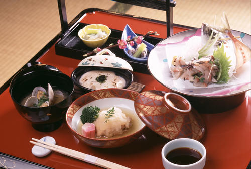 - 食べる順番...先に食べて欲しいものが左側や手前になるよう計算されている。刺身は左側・天ぷらは手前から等、作り手が後から盛り付けた物から食す。