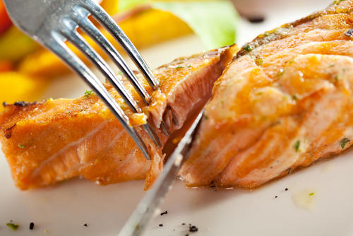 ※サーモンの身の中心は60℃~68℃に保たれ、水分が逃げない。