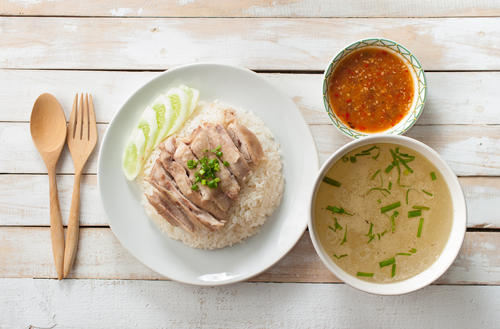 シンガポールの人気メニューであるハイナンチキンライスのタイ料理版"カオマンガイ(タイ風チキンライス)"のソースにもタオチオはマストである。 - 万能ソース