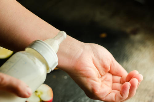 ミルクポットを使って作ったミルクでも、授乳適温ではないために冷まさなければならない。