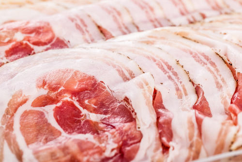 一般的にベーコンと呼ばれているものは、豚のバラ肉で作られている。バラ肉は濃厚な脂身が特徴的な豚肉の部位。脂肪と赤身が三層に折り重なっていることから「三枚肉」とも呼ばれている。他の部位に比べると脂身が多く、ジューシーであることから、ベーコンを作るのにも最適だ。よくホテルの朝食などで、カリカリに焼かれたベーコンがでてくることがあるが、脂の多いものでなければこのように作ることができない。日本で市販されているベーコンと呼ばれるものの多くはこのバラ肉で作られている。