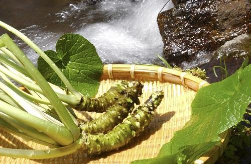 握り寿司や刺身に使われるワサビは日本原産で、山や渓流に自生し、西洋ワサビと区別して本ワサビとよばれることもある。水の中で育つものは沢ワサビ(水ワサビ)、畑で育つものは畑ワサビ(陸ワサビ)とよばれ、沢ワサビは生食用に、畑ワサビはわさび漬けなどに加工される。
