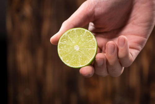 かぼすの果汁を搾る際には、切ったかぼすの皮の面を下にして搾るのがポイントだ。かぼすの爽やかな香りの成分は果皮に含まれている。また、皮に含まれる豊富な栄養素も逃さず搾ることができる。