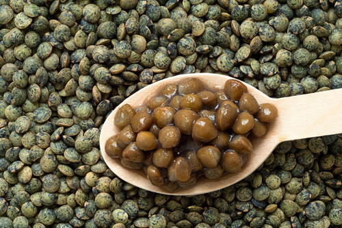 「ル・ピュイ産 緑レンズ豆AOP500g」は、フランス食材輸入業者のアルカン社が販売している商品である。AOC(フランス原産地呼称)の認証を受けており、レンズ豆の中でも最高品質といわれている。濃い緑色が特徴の皮ありタイプのレンズ豆であり、繊細な香りとしっかりした味わいが魅力となっている。使用する際はたっぷりのお湯で25~30分程度ゆでるようにしよう。