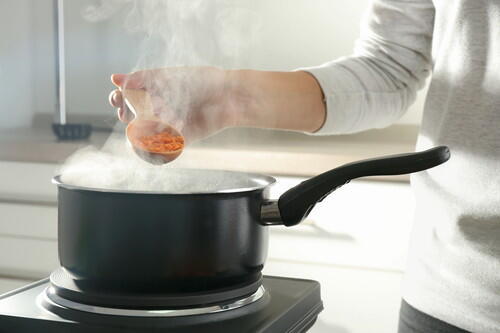 一般的な乾燥豆は「一晩水に浸して戻す」「食べる前には下茹でする」などの下準備が必要になる。しかし、平たい形状が特徴のレンズ豆は火が通りやすいため、水で戻すという工程は不要。また、皮ありのレンズ豆は多少アクが出るが、下茹でせずにほかの食材と一緒に加熱調理することができる。アクが気になるなら下茹でがおすすめだが、下茹で自体も10~15分程度で完了するのでお手軽だ。