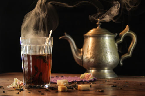 モロッコのアッツアイは、ミントをふんだんに使った苦甘いお茶だ。1杯当たりに使う砂糖は10g前後だからかなり甘い。こちらの地域は、料理に砂糖を使う文化がないため、お茶の時間に甘いものを摂る。特徴的なのは、お茶を高い位置から、グラスに注ぐスタイル。砂漠のある国ならではで、注ぐと気泡が立ち、飛んでくるホコリが混じっても簡単にすくい取れ、飲みやすい温度になる。