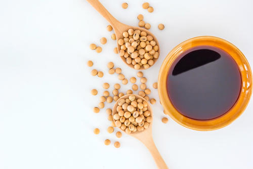 丸のままの乾燥大豆は100g当たりタンパク質33.8%、脂質19.7g含む。大豆は、醤油、味噌、豆腐に使われるほか、大豆油としても使われる。脱脂加工大豆は、丸のままの大豆から油を搾って残ったものを加工したものだ。タンパク質量が多いため、熟成過程でアミノ酸が多く作られ、丸のままの大豆よりも旨味が高くなる。