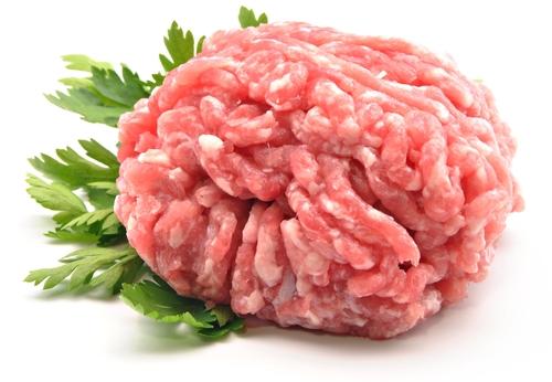すね肉、ネックなどの肉質が固い部分や、切り分けたあとの余り肉などがひき肉にされる。使用する部位で脂肪の含まれる量などが異なる。赤身肉をひき肉にしたものもある。