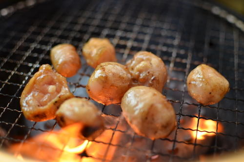 胸腺や膵臓を指す、シビレ。色も白っぽく、白子やフォアグラを思わせる滑らかさが特徴。よく焼いて、表面をカリッとさせるとより美味しく食べることができる。