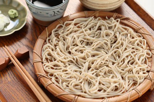 殻が付いたままのそばの実は「玄そば」、殻を取り除き割れずに原形をとどめているものが「丸抜き」。この丸抜きを挽いてそば粉を作り、打って、切ってそばにしていく訳だが、そば粉だけで打つと切れやすいので、小麦粉やふのり、卵、やまいもなどのつなぎを混ぜて作る場合もある。用いるそば粉の種類、つなぎとの配合、打ち方によって、色も香りも味も多彩なそば。生麺と乾麺もあり様々な種類がある。