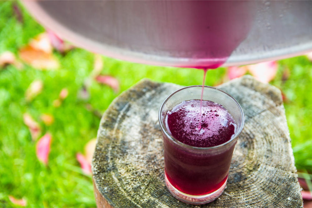 昔はワインをつくる際、ぶどうを足で踏んで果汁を搾り出していた。今でも、フランスやイタリア、スペインなどヨーロッパ各地では、ぶどうの収穫祭の伝統行事として「ぶどう踏み」が行われている。日本のワイナリーやぶどうの観光農園でも、ぶどう踏み体験をして絞り出したジュースをその場で飲めるイベントが人気のようだ。その味わいを家で再現できるのが、この作り方。単純ながらぶどうそのものの甘味や香りを存分に感じられる天然ジュースだ。