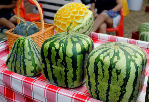 味は美味しくないのに、なぜか四角すいかの需要が増加している。本年度は昨年より2軒増えた9軒の農家が、四角スイカを栽培しているそうだ。ちなみに需要の主な内訳は、ディスプレー用らしい。サイコロのようにユニークな形がウケているようだ。