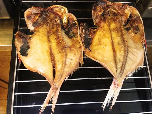 ※丸干しの場合は盛り付けるとき表になる方を先に焼く。 - 身の表面がうっすら飴色になって美味しそうな焼き色が付いたら反転。
