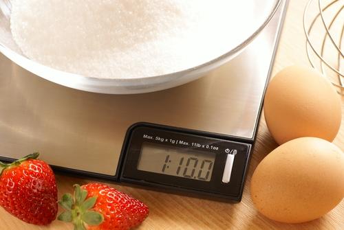 まずははかりの使い方を確認しておこう。調理用のはかりには、アナログタイプとデジタルタイプがあるが、デジタルの方が使いやすいかもしれない。はかりは不安定なところに置くと誤差が出てしまうので、平らで固いところで使うようにしよう。また、砂糖を量るときは、できるだけ砂糖をはかりの中央部分に置くようにするのも大切だ。