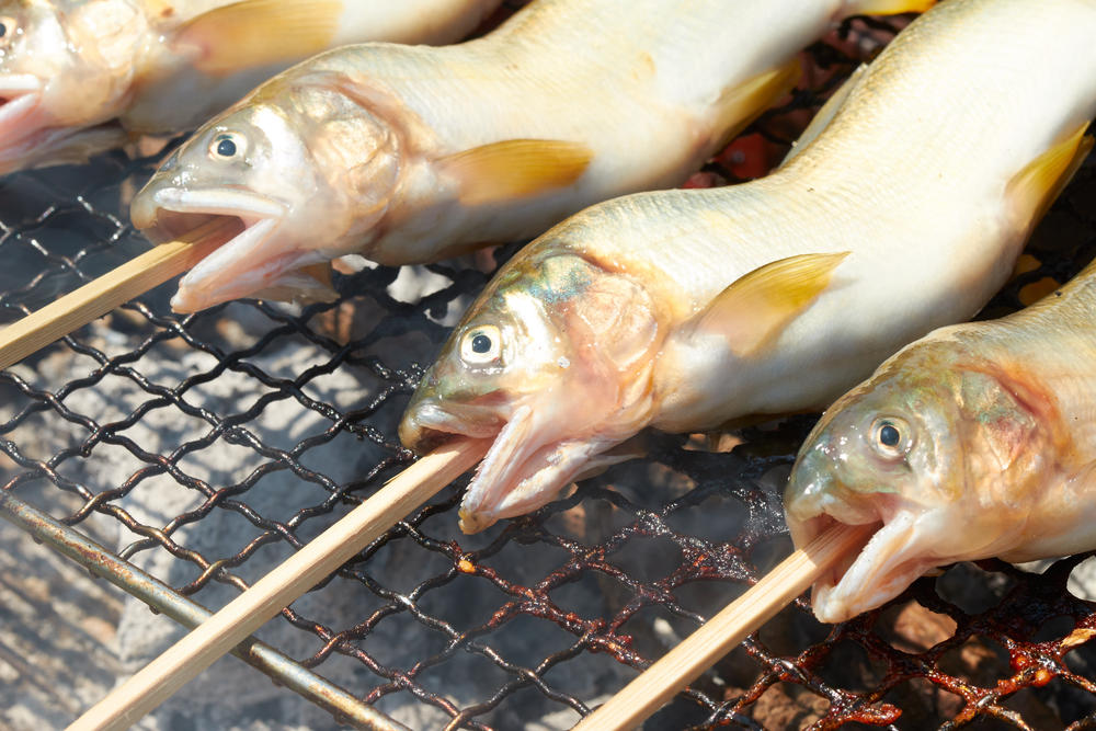 最上なのは産地の料理屋に赴き、釣り上げられたばかりの鮎を焼いたアツアツをガブリと食すことだと思うが、なかなかそうもいかないのが現実。しかし、どうしても旬を迎えた鮎を食べたい場合、スーパーに出回る比較的安価な養殖ものを入手し、自宅で塩焼きに挑戦してみるのも一興かもしれない。最近は串うちされたものも販売されている。