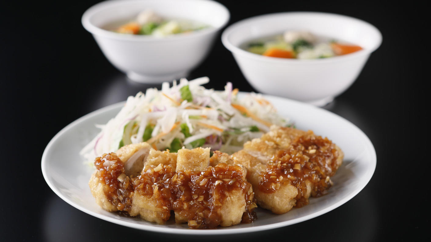 野菜と食べる油淋鶏