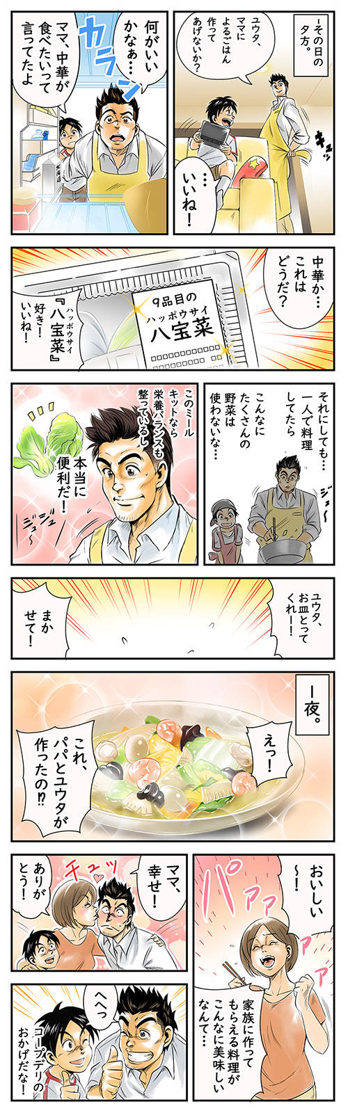 夫婦共働きで子供がいる家庭では、こんな漫画のようなシチュエーションを経験した事が少なからずあるだろう。そんな時こそ、ミールキットが活躍する場面だ。