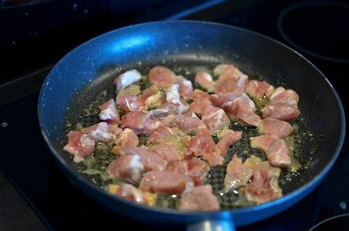 しっかり火を通すことは大事だが、長い時間加熱すると肉は硬くなる。そこで、野菜を投入する前に一旦取り出しておくわけだ。